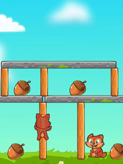 The cute Chip Family is making ready for the winter in this HTML5 puzzle game. Alvin, Jeanette and the other chipmunks need your help to restock acorns before it is getting too cold. You have to place the little rodents so they can chip away some blocks and make the rest of the blocks drop on the acorns and shell them. In the beginning it’s quite obvious which blocks you have to remove but you will have to think laterally soon.40 levels packed with challenging puzzles, super cute graphics and of course tons of fun will keep you entertained and engaged for hours. Play Chip Family now for free and help them to get through the winter!