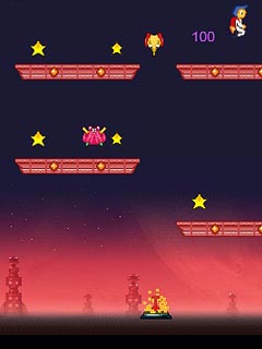 Join the quest to find the powerful interplanetary star gems! You control a deep space ranger in search of the gems. Use the jump pad to reach the floating platforms where you can find the gems. But look out for the aliens that patrol the platforms with each successful wave their numbers increase.