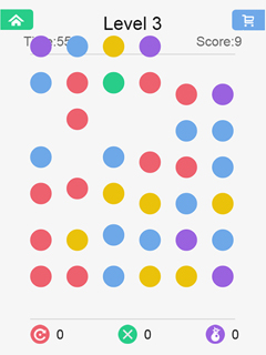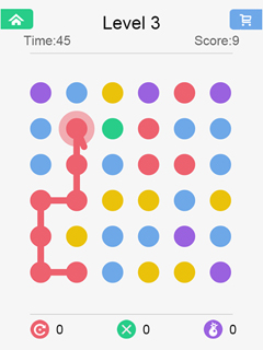 Dots is one of those rare games that you fire up to kill a few minutes of spare time and that you end up playing for hours and hours. You have to connect dots of the same color in order to make them vanish. For every dot you manage to clear, you score points and you have to achieve a certain score within sixty second to pass the level. If you form a loop all dots of the same color will disappear at a single blow. Extras like the ability to clear a single dot from the play field or to stop the time for a few seconds give you the much needed edge if it looks like your badly off.Play this highly addictive puzzle game now online and completely for free!