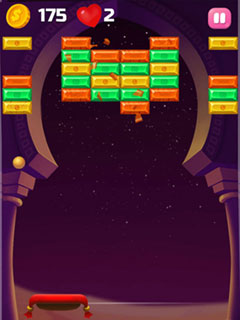 Are you looking for a fantastic brick breaking experience? Look no more – Jinn Dash is the very best Breakout style HTML5 game. Slide left or right to control your magic carpet. Keep the ball from falling out of the screen and try to hit the bricks. You have to break all blocks to proceed to the next level. From time to time you will find coins when breaking a brick. These coins will buy you cool bonus items that can help you to persist in tricky situations. They can slow down the game in critical moments, make your carpet bigger or give you a bonus life. Play Jinn Dash now for free and enjoy the best block breaking experience!