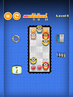 Welcome to Minion Lab, the ultimate brain teasing game! In this fun online game it is your objective to place the sweet minions on the buttons that matches their color. Once you pushed a minion in a direction, it will only stop if it dashes into something. So you have to use obstacles or other minions to block their way and get them in the right places. You need to use as few moves, as possible to earn an award. Are you able to find the optimal solution for all the puzzles and earn three stars in each and every level? Now go to the Minion Lab, play this exciting game and help them to find their way!