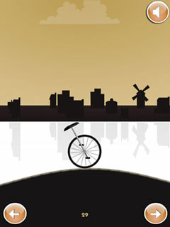 Monocycle is a fast paced arcade game where you have to balance not on a regular bike but on a monocycle. Once the game starts you can only influence if the monocycle shall lean forward or backward. If you lean too much to one side you will inevitable fall and you will break the monocycle. Now you might think it would be a good idea to drive very slowly with almost no slant but this is very, very wrong. You need every little bit of momentum to get past the hills. Otherwise you will come to a halt or even go back. Play Monocycle now for free and show your skills!