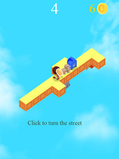 The Street is an awesome casual arcade game with fantastic 3D graphics. The game will test your patience and ability of quick-paced thinking while having to avoid obstacles on a course. As soon as you see an obstacle in front you have to click to rotate the street, in order to avoid it – or fall to your doom, it all depends on your reaction time. You control one of several acquirable avatars, and walk him through the thin street of blocks forming in front of him. Don’t forget to collect coins in your way, as this will allow you to buy more live and to keep going after making a mistake. Avoid the obstacles and unlock new cool looking 3D avatars. Play The Street now for free!
